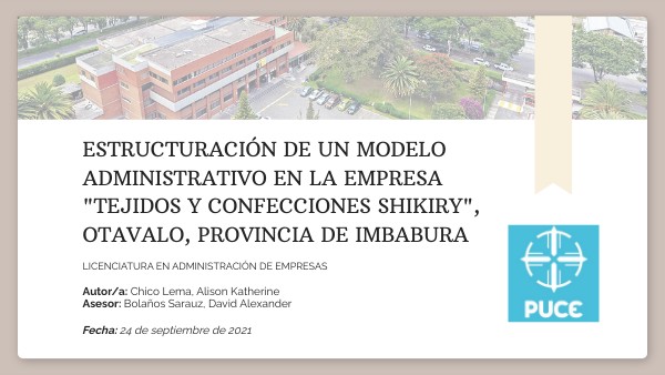 ESTRUCTURACIÓN DE UN MODELO ADMINISTRATIVO en LA EMPRESA "TEJIDOS Y CONFECCIONES SHIKIRY", OTAVALO, PROVINCIA DE IMBABURA