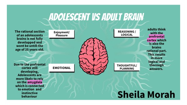 Due to the prefrontal cortex still developing, Adolescents are more likely to rely on the amygdala which is connected to emotion and instinctive behaviour
