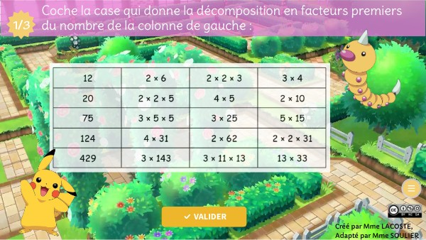 Coche la case qui donne la décomposition en facteurs premiers du nombre de la colonne de gauche :