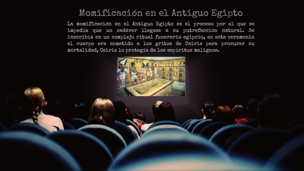 La momificación en el Antiguo Egipto es el proceso por el que se impedía que un cadáver llegase a su putrefacción natural. Se inscribía en un complejo ritual funerario egipcio, en esta ceremonia el cuerpo era sometido a los gritos de Osiris para procurar su mortalidad, Osiris lo protegía de los espíritus malignos.