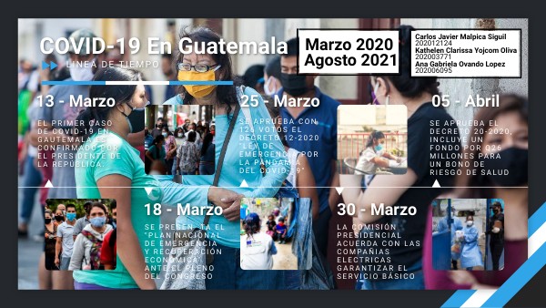 Junio Guatemala certificada como nación con más muertes de centroamérica provocadas por el virus Julio Se da a conocer que el presupuesto para la pandemia fue malgastado y tan solo 50% ejecutado SE registran 10,005 fallecimientos 29-julio paro nacional para exigir renuncia del presidente y consuelo porras. 02-agosto inicio de vacunacion a estudiantes universitarios