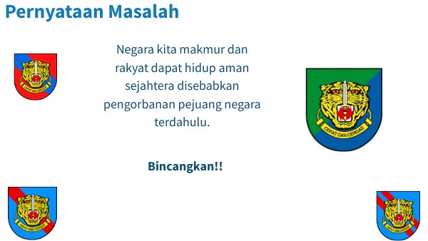 Negara kita makmur dan rakyat dapat hidup aman sejahtera disebabkan pengorbanan pejuang negara terdahulu.
