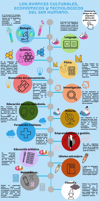 En física elaboré una infografía sobre los avances culturales, tecnológicos y económicos del hombre, también debía entrelazar ese tema con la ya mencionada asignatura.