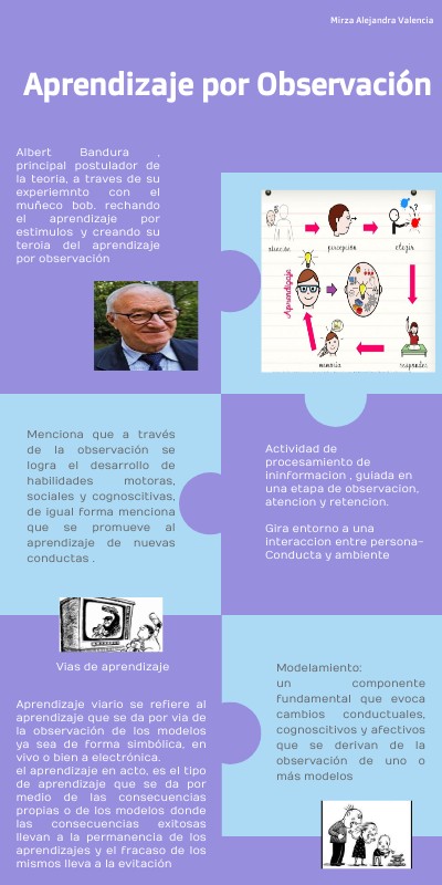 Menciona que a través de la observación se logra el desarrollo de habilidades motoras, sociales y cognoscitivas, de igual forma menciona que se promueve al aprendizaje de nuevas conductas .