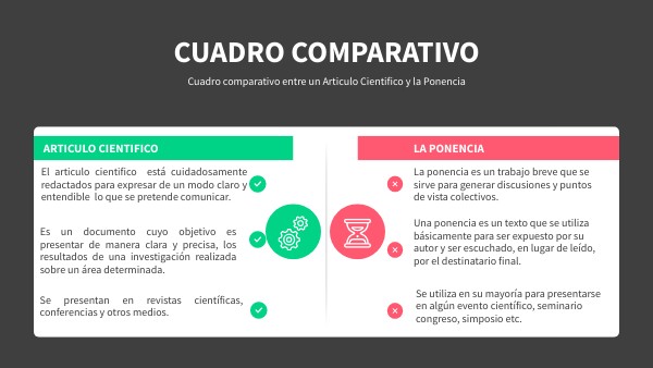 Cuadro comparativo entre un Articulo Cientifico y la Ponencia