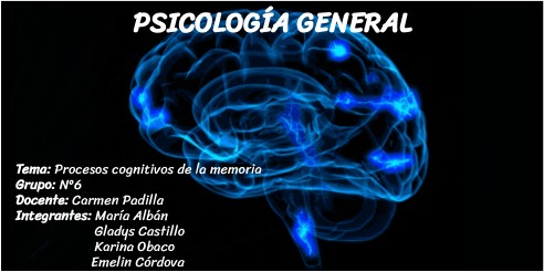 Tema: Procesos cognitivos de la memoria Grupo: Nº6 Docente: Carmen Padilla Integrantes: María Albán Gladys Castillo Karina Obaco Emelin Córdova