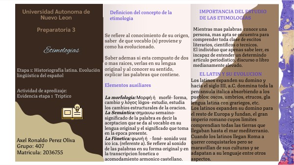 Etapa 1: Historiografía latina. Evolución lingüística del español Actividad de apredizaje: Evidencia etapa 1 Triptico