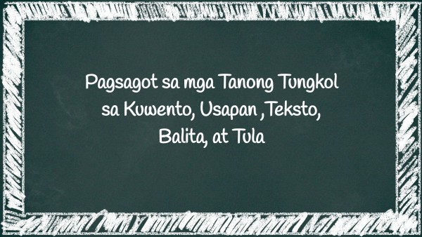 Pagsagot sa mga Tanong Tungkol sa Kuwento, Usapan ,Teksto, Balita at T