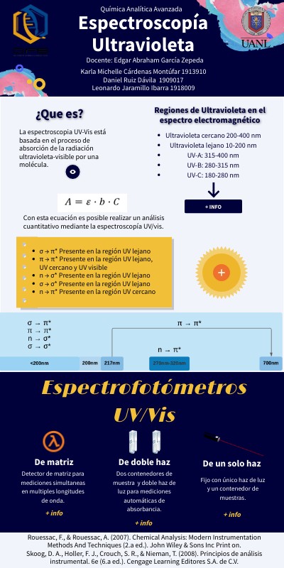 Rouessac, F., & Rouessac, A. (2007). Chemical Analysis: Modern Instrumentation Methods And Techniques (2.a ed.). John Wiley & Sons Inc Print on.Skoog, D. A., Holler, F. J., Crouch, S. R., & Nieman, T. (2008). Principios de análisis instrumental. 6e (6.a ed.). Cengage Learning Editores S.A. de C.V.