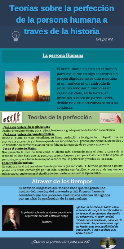 ¿Qué es la perfección según la RAE? Acabar enteramente una obra , dándole el mayor grado posible de bondad o excelencia . ¿Qué es la perfección para Aristóteles? Desde el punto de vista metafísico, se llama perfección a lo siguiente: ... Aquello que en cuanto a la excelencia y al bien no puede ser superado en su genero, por ejemplo, un medico y un flautista son perfectos cuando no les falta nada respecto de su propia excelencia Desde el punto de Platón: Nos presenta la idea de bien como el objeto más adecuado para el alma y causa de la realidad, el bien hace que las personas seamos buenas y eso para Platón era la base para las personas, ya que si había bien no podía haber mal, la perfección y verdad de las cosas. En la tradición budista: Se conoce a la virtud con el nombre de pāramitā (en sánscrito). El término pāramitā o pāramī posee una doble etimología: por un lado, significa «perfección», y por otro, de una manera más creativa, suele tomar el significado de «que ha alcanzado la lejana orilla».