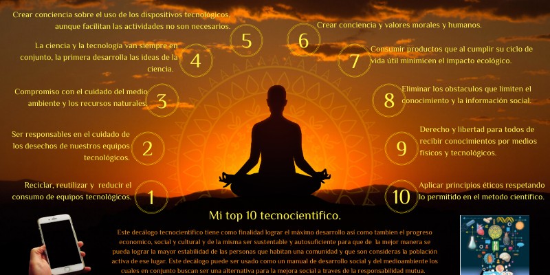 Este decálogo tecnocientifico tiene como finalidad lograr el máximo desarrollo así como tambien el progreso economico, social y cultural y de la misma ser sustentable y autosuficiente para que de la mejor manera se pueda lograr la mayor estabilidad de las personas que habitan una comunidad y que son consideras la población activa de ese lugar. Este decálogo puede ser usado como un manual de desarrollo social y del medioambiente los cuales en conjunto buscan ser una alternativa para la mejora social a traves de la responsabilidad mutua.