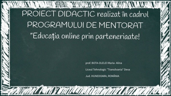 PROIECT DIDACTIC realizat în cadrul PROGRAMULUI DE MENTORAT”Educația online prin parteneriaate!
