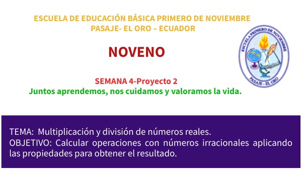TEMA: Multiplicación y división de números reales. OBJETIVO: Calcular operaciones con números irracionales aplicando las propiedades para obtener el resultado.