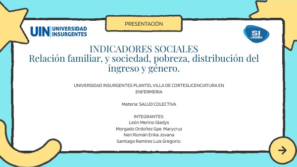 INDICADORES SOCIALES Relación familiar, y sociedad, pobreza, distribución del ingreso y género.
