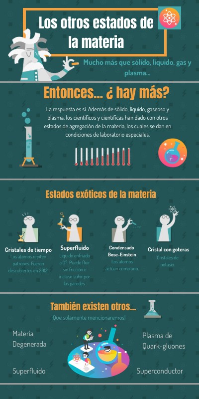 La respuesta es sí. Además de sólido, líquido, gaseoso y plasma, los científicos y científicas han dado con otros estados de agregación de la materia, los cuales se dan en condiciones de laboratorio especiales.