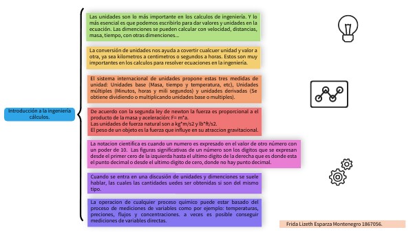 Las unidades son lo más importante en los calculos de ingeniería. Y lo más esencial es que podemos escribirlo para dar valores y unidades en la ecuación. Las dimenciones se pueden calcular con velocidad, distancias, masa, tiempo, con otras dimenciones...