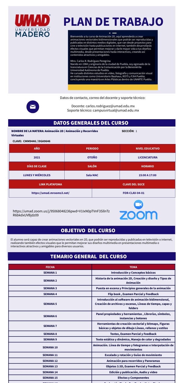Datos de contacto, correo del docente y soporte técnico: Docente: carlos.rodriguez@umad.edu.mx Soporte técnico: campusvirtual@umad.edu.mx