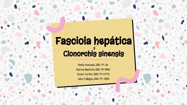 1. Fasciola hepatica [Internet]. [citado 13 de agosto de 2021]. Disponible en: https://www.visavet.es/guessparasite/fasciola-hepatica-5.php 2. Fasciola [Internet]. Fundación iO. [citado 13 de agosto de 2021]. Disponible en: https://fundacionio.com/salud-io/enfermedades/parasitos/fasciola/ 3. Clonorchis sinensis [Internet]. [citado 13 de agosto de 2021]. Disponible en: https://www.visavet.es/guessparasite/clonorchis-sinensis-11.php 4. Clonorchis sinensis [Internet]. Fundación iO. [citado 13 de agosto de 2021]. Disponible en: https://fundacionio.com/salud-io/enfermedades/parasitos/clonorchis-sinensis/ 5. msdmanuals.com [Internet] Estados Unidos; Manual MSD; [Citado 14 de agosto de 2021] Disponible en: https://www.msdmanuals.com/es/hogar/multimedia/image/v14456885_es 6. cdc.gov [Internet] Estados Unidos; Centro para el control y la prevención de enfermedades [Citado 14 de agosto de 2021]; Disponible en: https://www.cdc.gov/dpdx/clonorchiasis/index.html 7. cdc.gov [Internet] Estados Unidos; Centro para el control y la prevencion de enfermedades [Citado 14 de agosto de 2021]; Disponible en: https://www.cdc.gov/parasites/fasciola/biology.html 8. Myriam LP, Augustus CA, Ruben NO, Atlas de parasitología. Bogota: El manual moderno Colombia Ltda; 2006