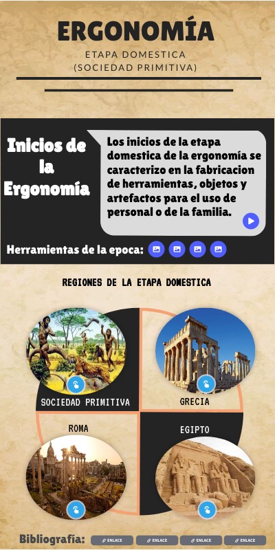 Los inicios de la etapa domestica de la ergonomía se caracterizo en la fabricacion de herramientas, objetos y artefactos para el uso de personal o de la familia.