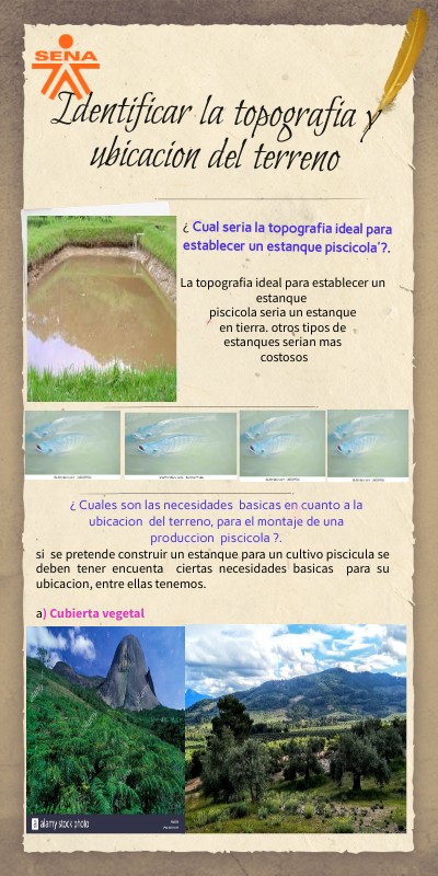¿ Cual seria la topografia ideal para establecer un estanque piscicola'?.