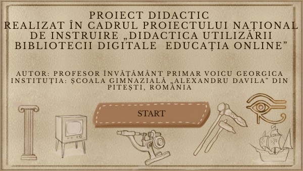 AUTOR: PROFESOR ÎNVĂȚĂMÂNT PRIMAR VOICU GEORGICAINSTITUȚIA: ȘCOALA GIMNAZIALĂ „ALEXANDRU DAVILA” PITEȘTI, ROMÂNIA Aria curriculară: om și societate Categoria de vârstă: 8-9 ani Clasa a Iv-a Echipa „softuri istorie” mentori: neferu oana și vulpe viorica