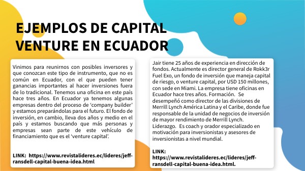 EJEMPLOS DE CAPITAL VENTURE EN ECUADOR