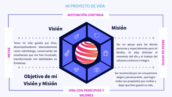 Tener mi vida guiada por Dios; desempeñandome laboradamente como odontologa, conservando las enseñanzas que me han inculcado, transformando mis debilidades en fortalezas.