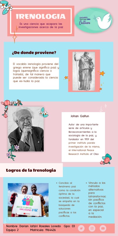 - Concibio al fenómeno paz como la condición óptima de la sociedad, la cual se empeña en la búsqueda de soluciones pacíficas a los conflictos.