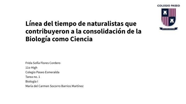 Frida Sofía Flores Cordero 11o High Colegio Paseo Esmeralda Tarea no. 1 Biología I María del Carmen Socorro Barrios Martínez
