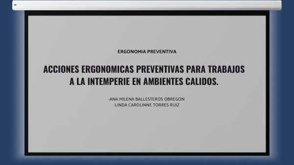 las acciones ergonómicas preventivas más pertinentes en los trabajos que se realizan a la intemperie y en ambientes cálidos, tienen que estar integradas en toda la empresa a partir de su propia planeación, del cumplimiento de la normatividad y reglamentación que se encuentre vigente.