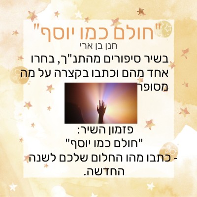 פזמון השיר: "חולם כמו יוסף" - כתבו מהו החלום שלכם לשנה החדשה.