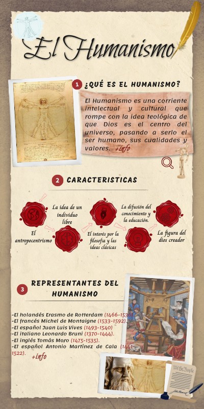 El Humanismo es una corriente intelectual y cultural que rompe con la idea teológica de que Dios es el centro del universo, pasando a serlo el ser humano, sus cualidades y valores.