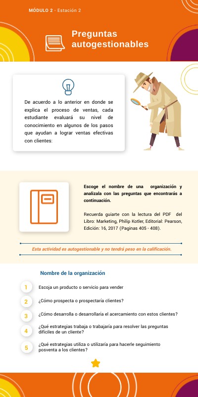 Escoge el nombre de una organización y analizala con las preguntas que encontrarás a continuación. Recuerda guiarte con la lectura del PDF del Libro: Marketing, Philip Kotler, Editorial: Pearson, Edición: 16, 2017 (Paginas 405 - 408).