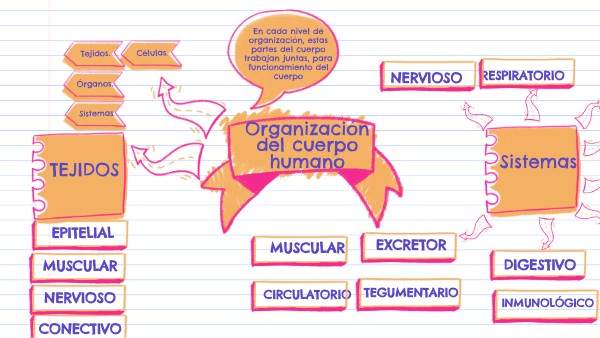 En cada nivel de organización, estas partes del cuerpo trabajan juntas, para funcionamiento del cuerpo