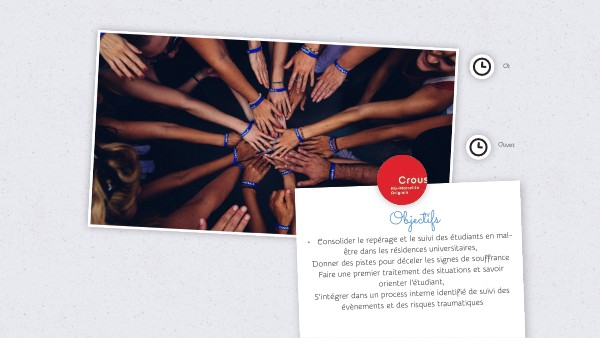 • Consolider le repérage et le suivi des étudiants en mal-être dans les résidences universitaires, Donner des pistes pour déceler les signes de souffranceFaire une premier traitement des situations et savoir orienter l’étudiant, S’intégrer dans un process interne identifié de suivi des évènements et des risques traumatiques