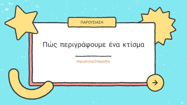 Αναφέρουμε το ΟΝΟΜΑ (αν υπάρχει). Αναφέρουμε ΠΟΥ ΒΡΙΣΚΕΤΑΙ. Περιγράφουμε την ΙΣΤΟΡΙΑ του (πότε και για ποιο λόγο χτίστηκε). Περιγράφουμε την ΠΩΣ ΕΙΝΑΙ από έξω προς τα μέσα.