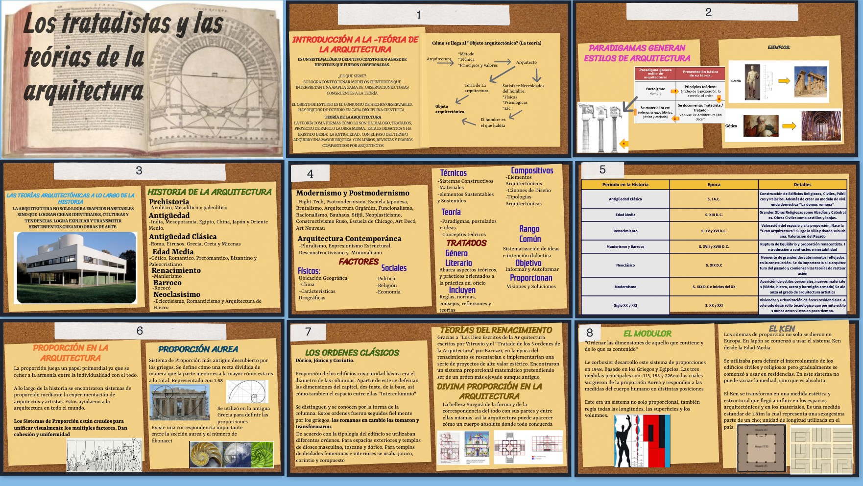 Teoría de la arquitectura La teoría toma formas como lo son: el dialogo, tratados, proyecto de papel o la obra misma. esta es didactica y ha existido desde la antiguedad . con el paso del tiempo adquirio una mayor riqueza, con libros, revistas y diarios compartidos por arquitectos