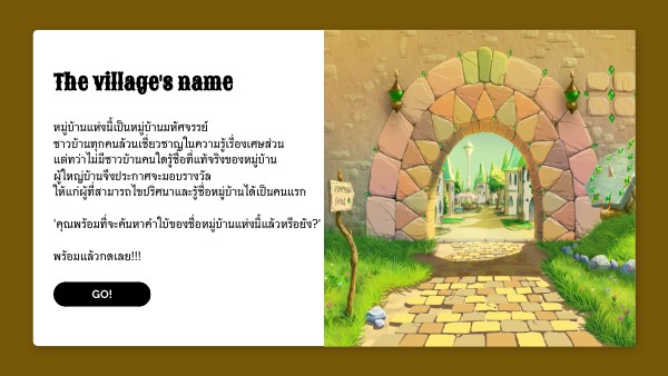 หมู่บ้านแห่งนี้เป็นหมู่บ้านมหัศจรรย์ ชาวบ้านทุกคนล้วนเชี่ยวชาญในความรู้เรื่องเศษส่วน แต่ทว่าไม่มีชาวบ้านคนใดรู้ชื่อที่แท้จริงของหมู่บ้าน ผู้ใหญ่บ้านจึงประกาศจะมอบรางวัลให้แก่ผู้ที่สามารถไขปริศนาและรู้ชื่อหมู่บ้านได้เป็นคนแรก'คุณพร้อมที่จะค้นหาคำใบ้ของชื่อหมู่บ้านแห่งนี้แล้วหรือยัง?' พร้อมแล้วกดเลย!!!