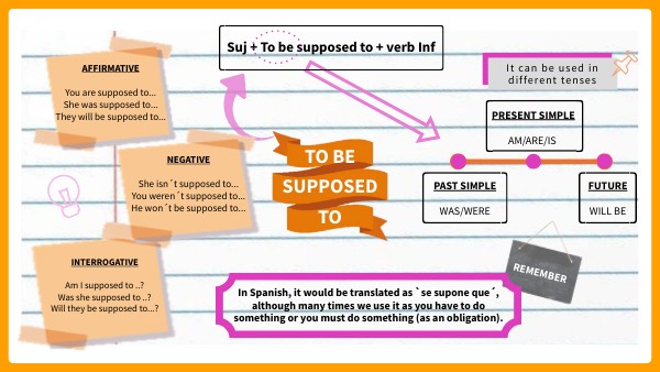 NEGATIVE She isn´t supposed to... You weren´t supposed to... He won´t be supposed to...
