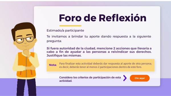 Si fuera autoridad de la ciudad, mencione 2 acciones que llevaría a cabo a fin de ayudar a las personas a reivindicar sus derechos. Justifique las mismas.