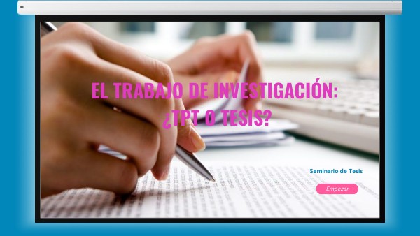 - Elige si tu trabajo de investigación será un TPT o una Tesis.