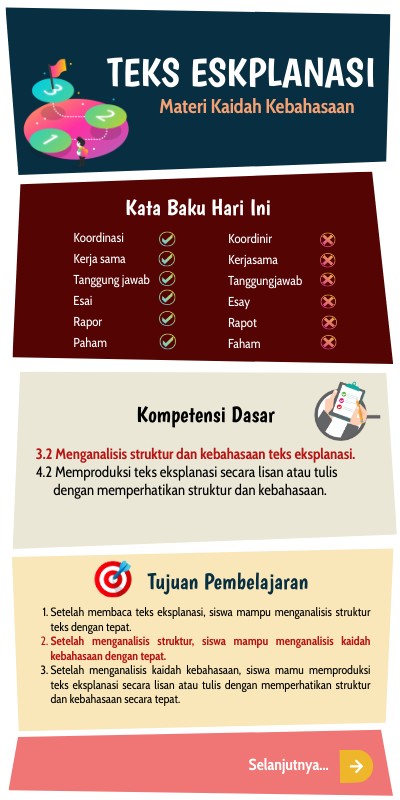 - Setelah membaca teks eksplanasi, siswa mampu menganalisis struktur teks dengan tepat.