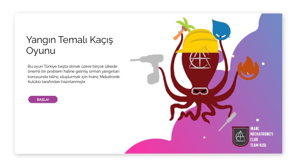 Bu oyun Türkiye başta olmak üzere birçok ülkede önemli bir problem haline gelmiş orman yangınları konusunda bilinç oluşturmak için İnanç Mekatronik Kulübü tarafından hazırlanmıştır.