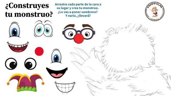 Arrastra cada parte de la cara a su lugar y crea tu monstruo. ¿Le vas a poner sombrero? Y nariz, ¿llevará?