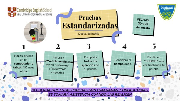 RECUERDA QUE ESTAS PRUEBAS SON EVALUADAS Y OBLIGATORIAS. SE TOMARÁ ASISTENCIA CUANDO LAS REALICEN.