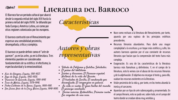 - Recursos literarios abundantes. Para darle una mayor complejidad a la escritura y un toque más estético y culto, los autores barrocos apostan por el uso constante de recursos literarios que hacían que la comprensión del texto fuera más compleja.