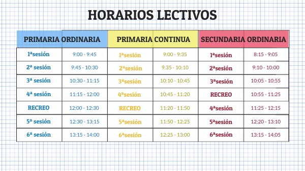 Horarios lectivos de las etapas educativas
