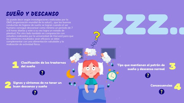 Se puede decir según investigaciones realizadas por la OMS (organización mundial de la salud )., que las buenas conductas de higiene de sueño se logran cuando el ser humano consigue descansar como mínimo un periodo de 7 a 8 horas diarias y este a su vez logra un estado de plenitud. Por otro lado también en comparación con estudios realizados por la universidad de Harvard para que los anteriores resultados sean eficaces se debe complementar con una alimentación saludable y la realización de actividad física.