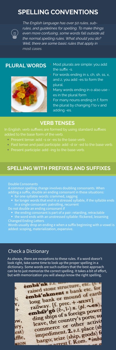 The English language has over 50 rules, sub-rules, and guidelines for spelling. To make things even more confusing, some words fall outside all the normal spelling rules. What should you do? Well, there are some basic rules that apply in most cases.