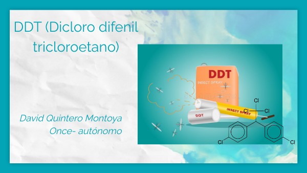 El 1,1,1-tricloro-2,2-bis(p-clorofenil) etano (DDT) es el insecticida, es un compuesto organoclorado su principal uso es en los insecticidas. Es incoloro. Es muy soluble en las grasas y en disolventes orgánicos, y prácticamente insoluble en agua.